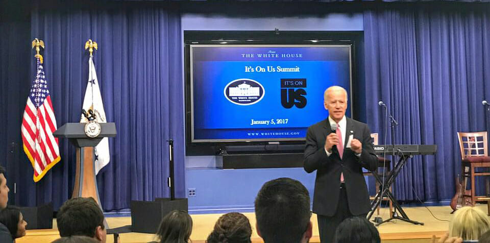 Vice President Joe Biden addresses the problem of sexual assault to a room full of It’s On Us partners and supporters.